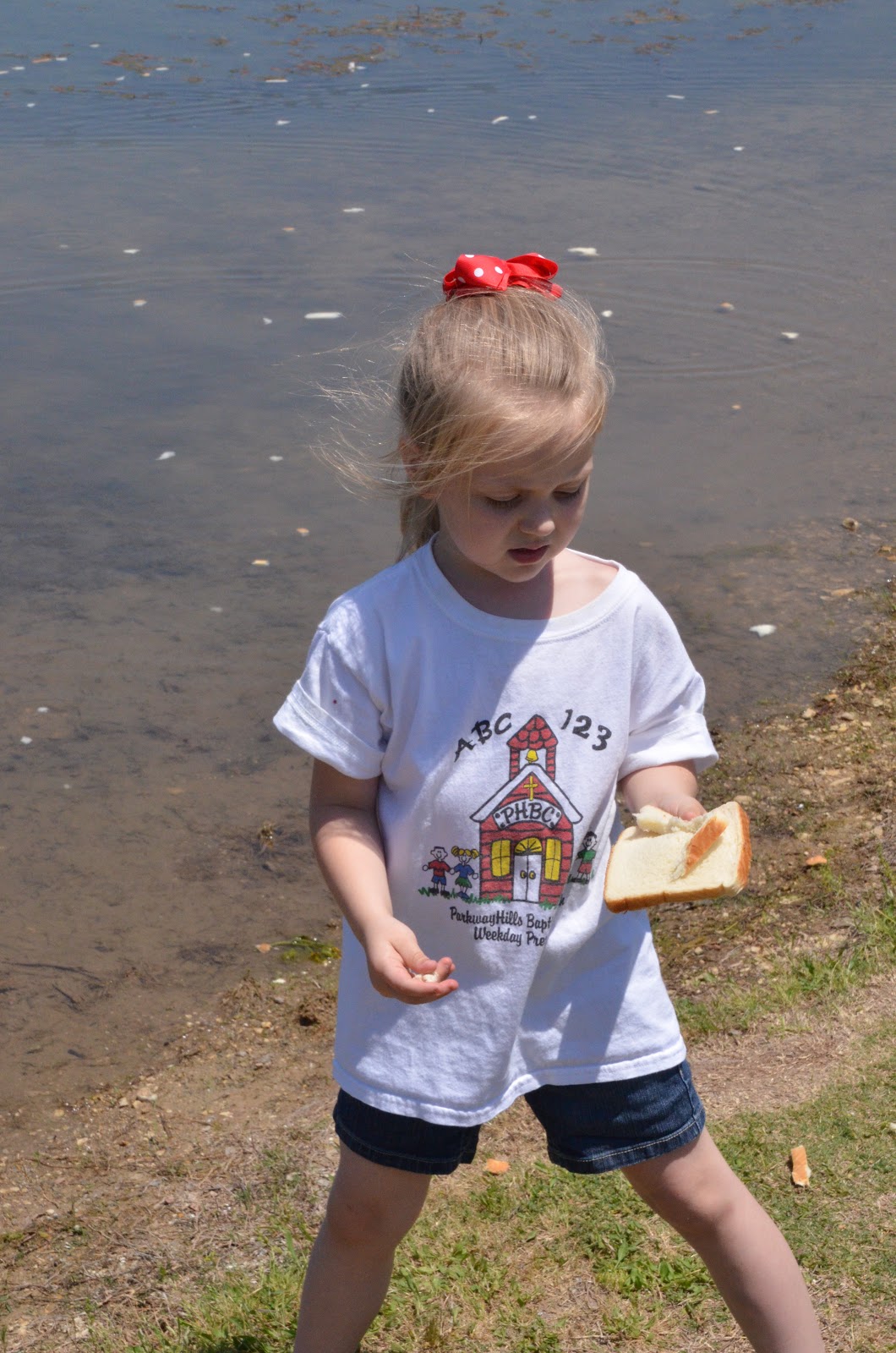 Except there were no ducks! That didn't stop them from having a blast throwing wads of bread into the water. It's so funny sometimes to see which activities appeal to five year olds. :-)
